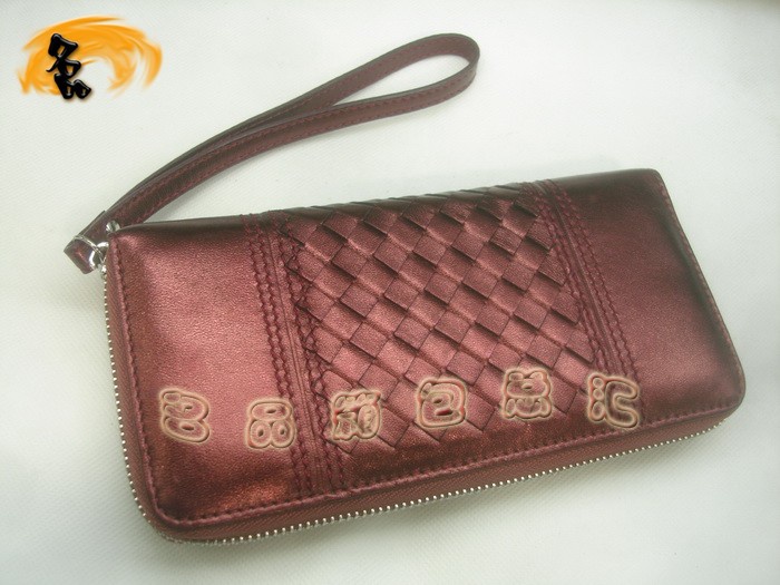 08718 Bottega Veneta羊皮編織錢包 BV女包 Bottega長款錢包 卡包 手包 棗紅色