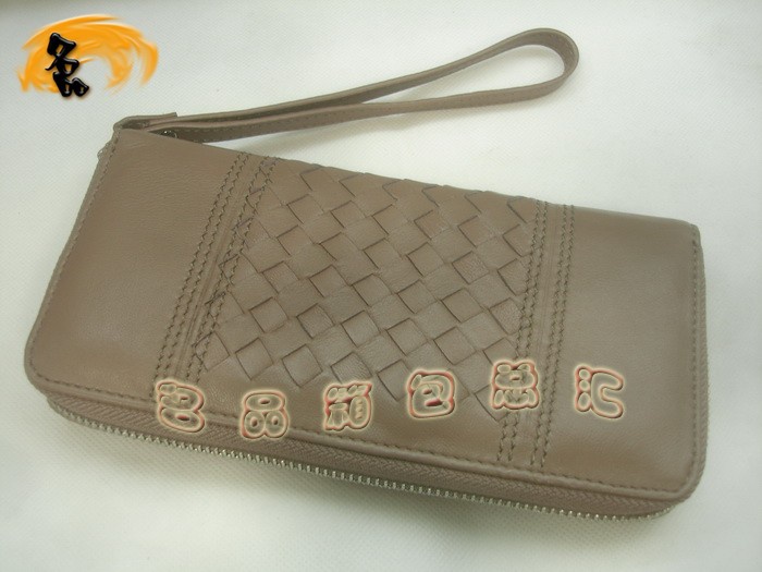 08718 Bottega Veneta羊皮編織錢包 BV手拿包 Bottega長款錢包 卡包 手包 淺啡色