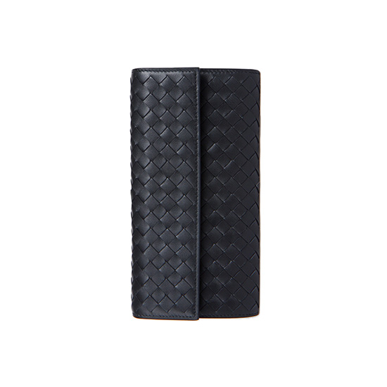 150509 Bottega Veneta寶緹嘉 黑色 編織 女士長(zhǎng)款按扣開合錢包