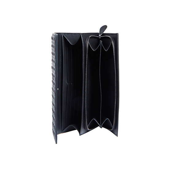 • 150509 Bottega Veneta寶緹嘉 黑色 編織 女士長(zhǎng)款按扣開合錢包