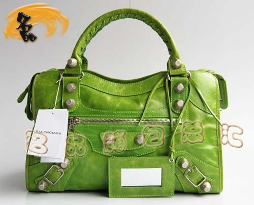 • 084332A BLENCIAGA最新手提包 BLENCIAGA綠色牛皮時尚女包 巴黎世家機車包