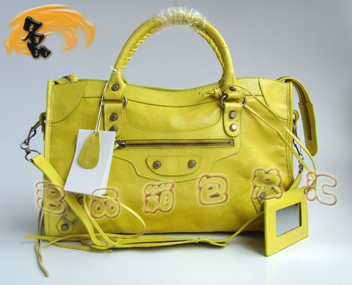 • 084332 BALENCIAGA新款黃色 經典牛皮女士斜挎包 巴黎世家機車包 手提包