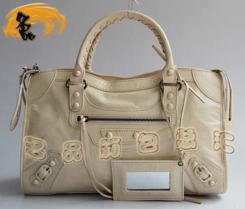 • 084332 正品品質 BLENCIAGA米白色牛皮時尚女士斜挎包 巴黎世家機車包 手提包