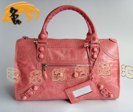 084824 巴黎世家 最新款花邊經典女士手提包 BLENCIAGA粉紅色牛皮時尚機車包