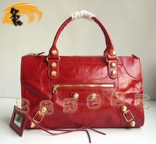 • 084324B BALENCIAGA手提包 BALENCIAGA經典款機車包 大紅色牛油皮時尚女包
