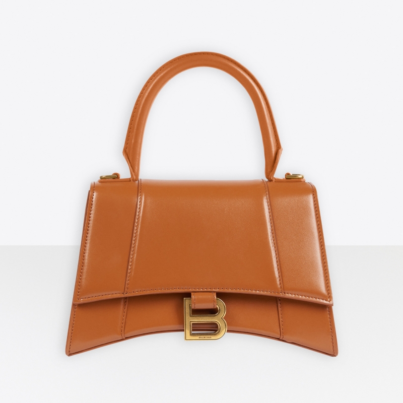 • 5935461 巴黎世家女包 Hourglass 棕色閃亮光滑牛皮革小號Top Handle手袋