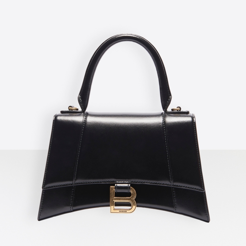 - 5935461 巴黎世家女包 黑色閃光box小牛皮Hourglass小號(hào)手提包