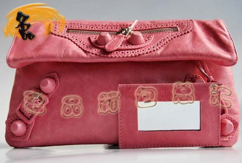 • 084351S BLENCIAGA新款女包 粉紅色牛皮花邊女士手拿包 BLENCIAGA晚宴包