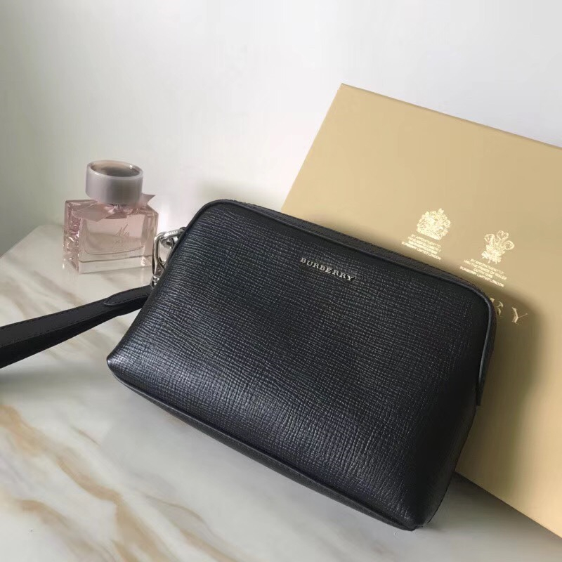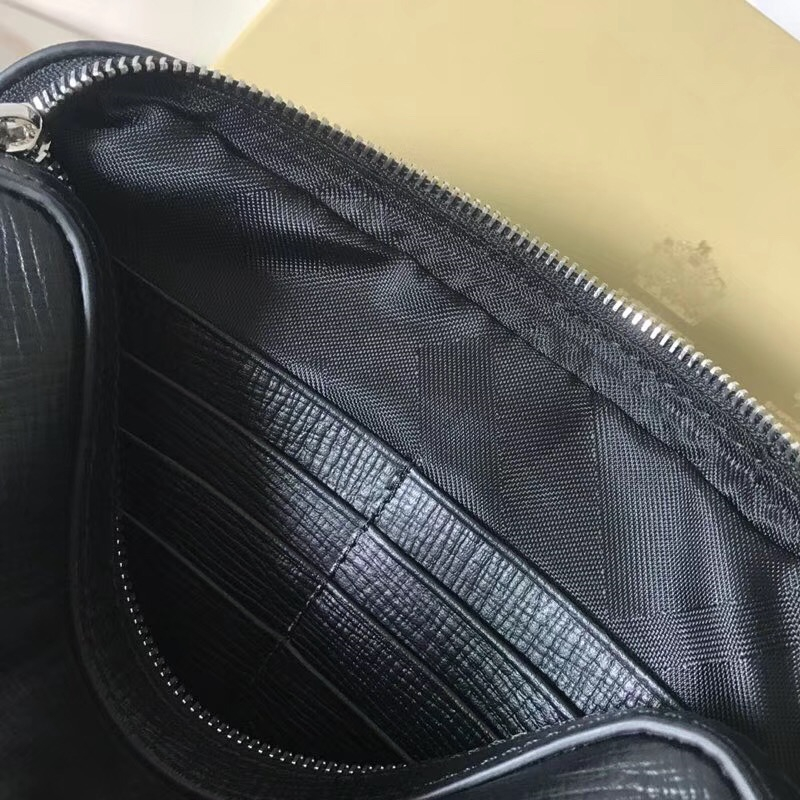 • Burberry新款男包 小牛皮十字紋 巴寶莉手拿包 多功能手包 黑色