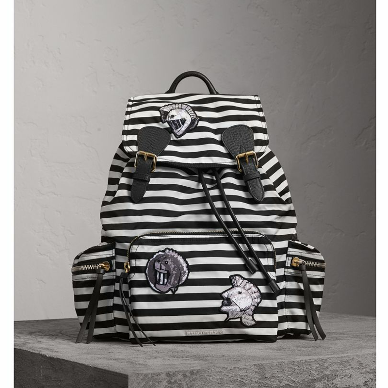 - 40543471 巴寶莉 The Rucksack 中號 帕拉斯頭像拼頭盔嵌花 軍旅背包 黑白條紋