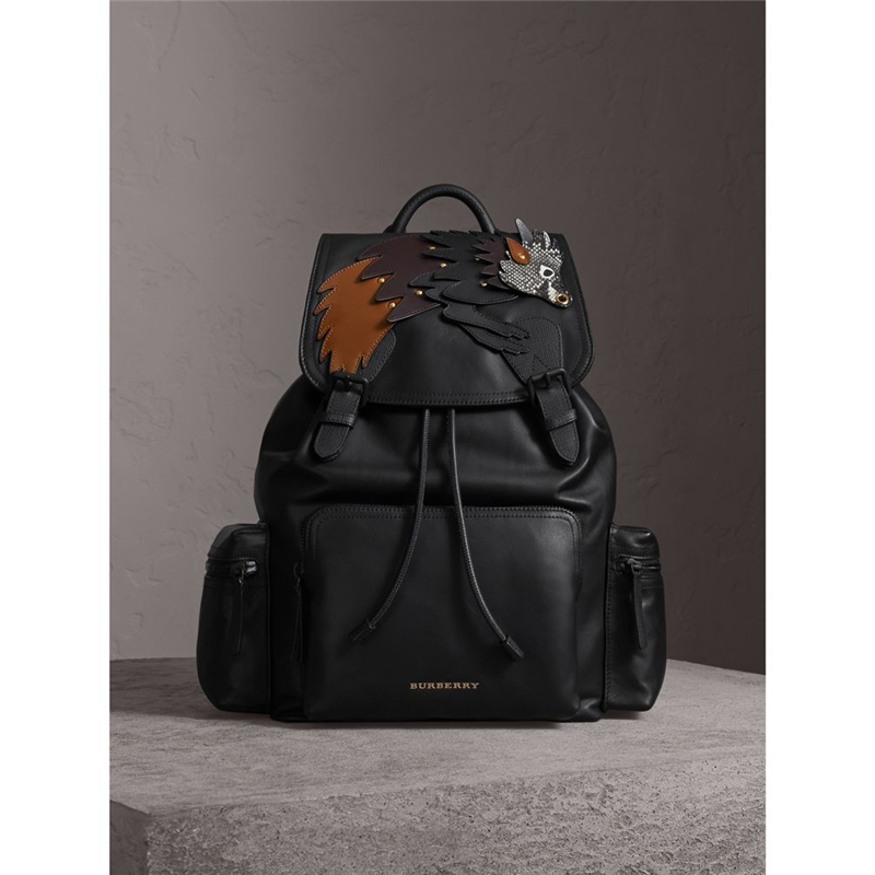 • 40556361 The Rucksack 大號 怪獸印花 巴寶莉男包 尼龍拼皮革 軍旅背包 黑色