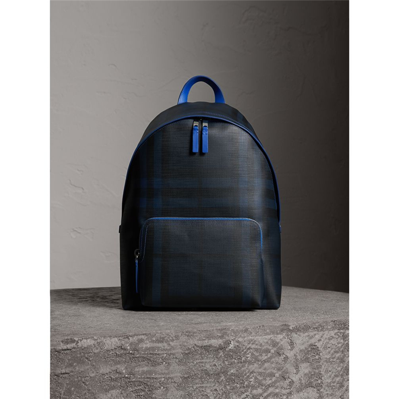 40648891 巴寶莉 皮革裝飾 London 格紋雙肩包 巴寶莉男包 海軍藍配黑色