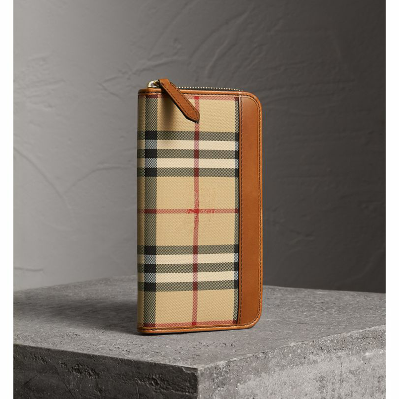 • 39784291 巴寶莉 Horseferry 格紋 全拉鏈 小號 錢夾 棕褐色