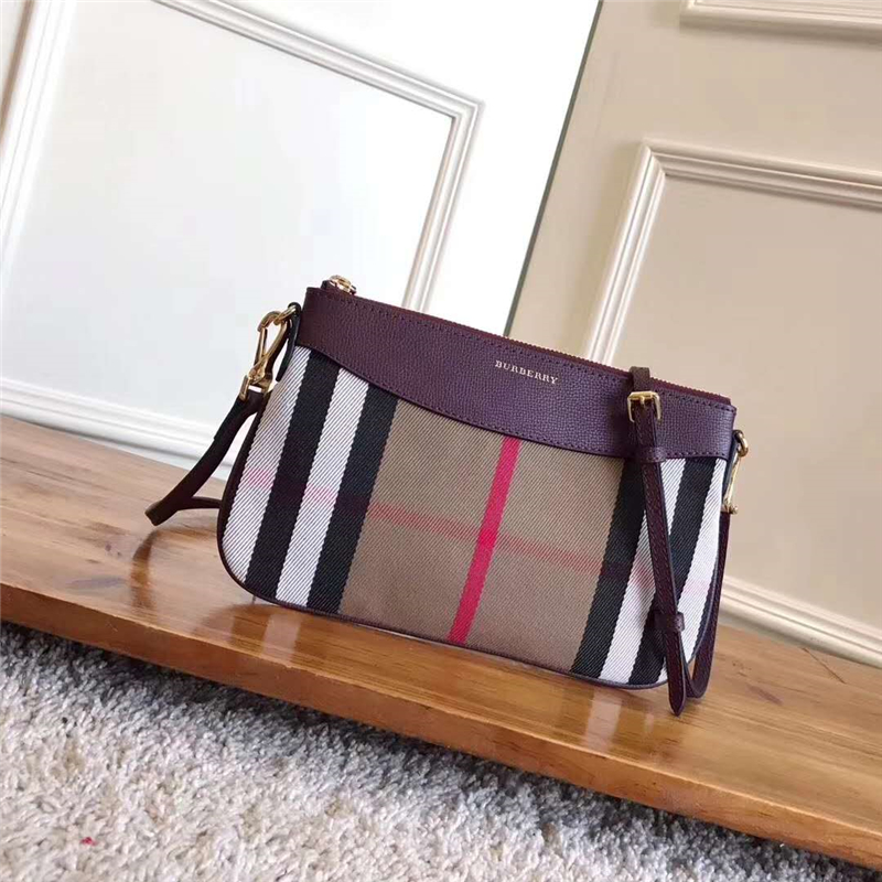 當前位置: 首頁>Burberry|博柏利>Burberry女包> 39753751 巴寶莉 House 格紋拼皮革 手拿包肩包 暗紫色