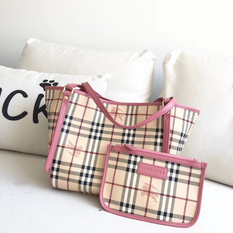 Burberry子母包 經典戰馬格紋 巴寶莉托特包 手提單肩購物袋 粉色