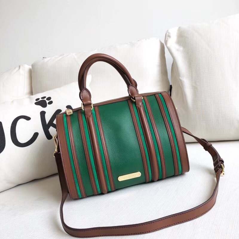 Burberry新款 戰馬印花 波士頓包 進口小牛皮 巴寶莉手提包 綠色