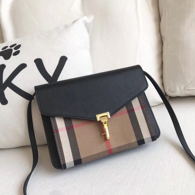 40799671 巴寶莉 House格紋拼皮革 迷你斜背包 黑色