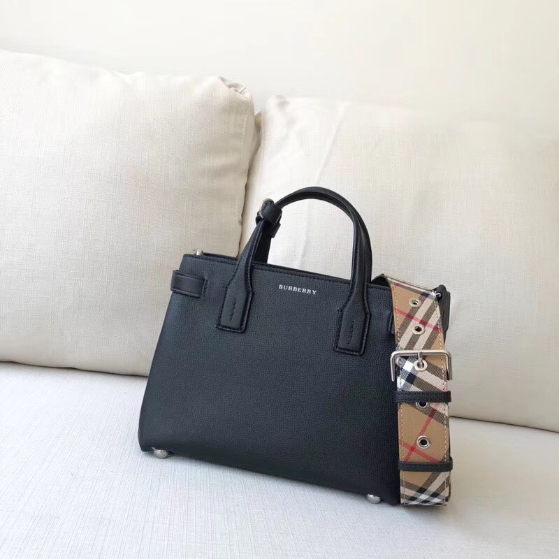 40800741 巴寶莉 The Banner系列 小號 皮革拼Vintage格紋 班納手袋 黑色