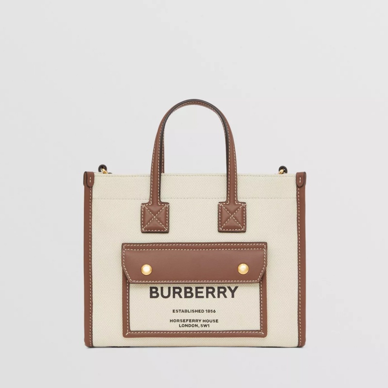 80441431 巴寶莉Burberry Freya 迷你雙色帆布拼皮革芙蕾雅托特包 巴寶莉女包 棕色