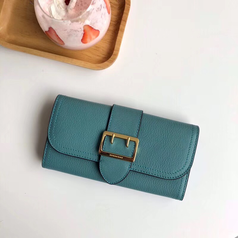 Burberry新款 巴寶莉錢包 皮革 長款錢夾 山羊紋小牛皮 湖綠色
