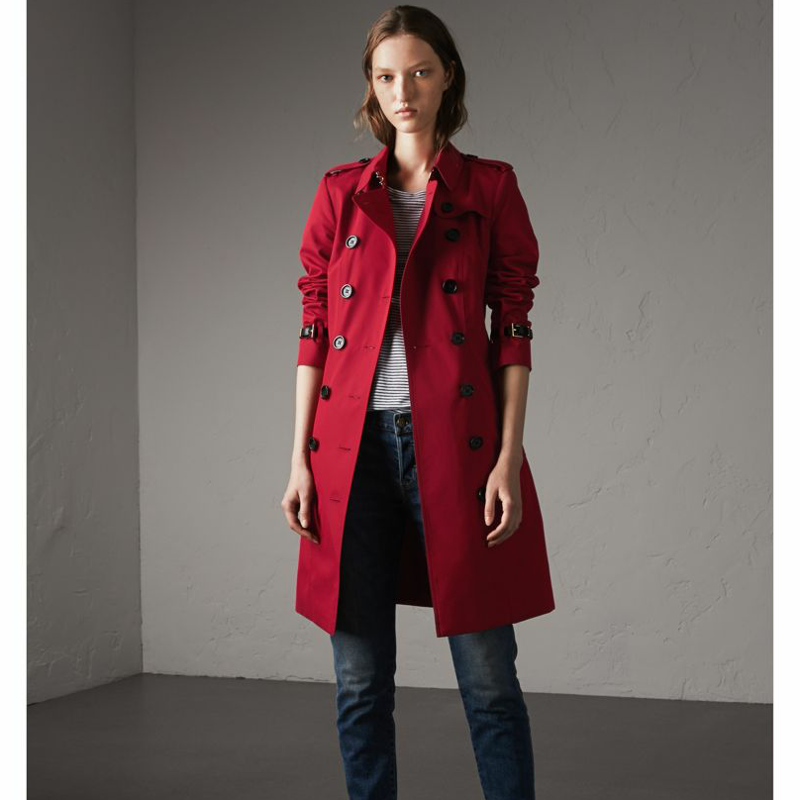當前位置: 首頁>Burberry|博柏利>Burberry女裝> 40435811 Burberry巴寶莉 皮革裝飾 長款 棉質嘎巴甸 Trench 風衣 繽紛紅色