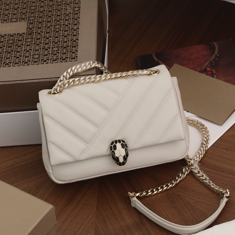 - Bvlgari寶格麗 Serpenti Cabochon包 小號(hào)單肩包 白色