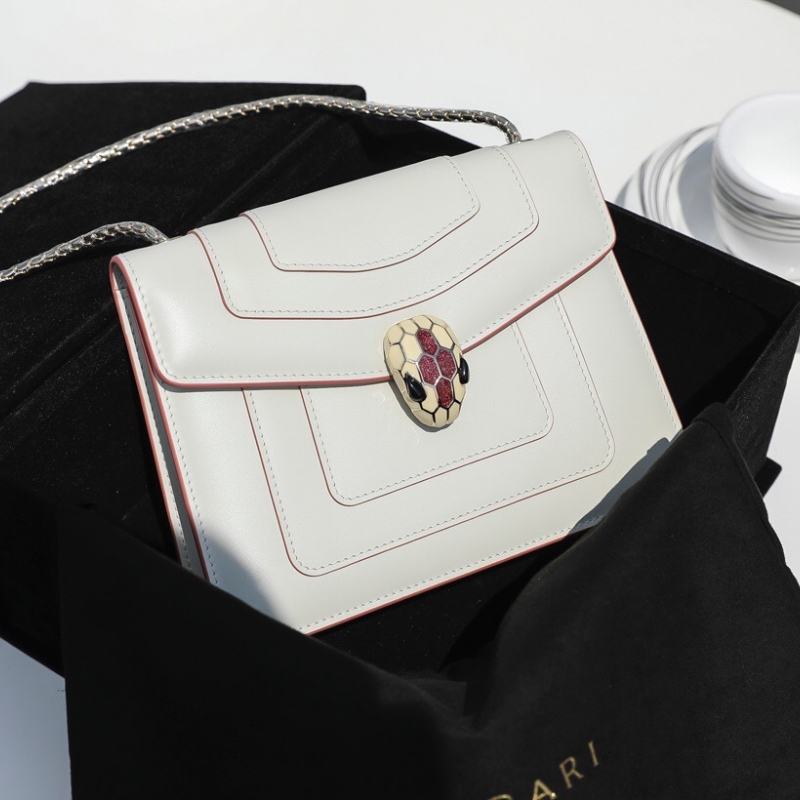 • BVLGARI寶格麗 Serpenti Forever系列女包 翻蓋蛇頭包 白色