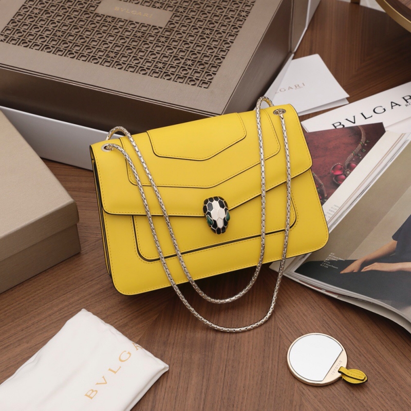 BVLGARI寶格麗 Serpenti Forever系列女包 中號 寶格麗蛇頭包 黃色