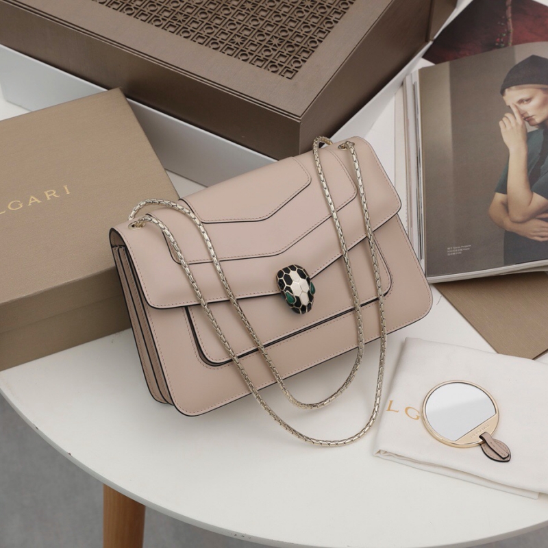 • Bvlgari寶格麗 Serpenti Forever系列女包 中號 寶格麗蛇頭包 奶茶色