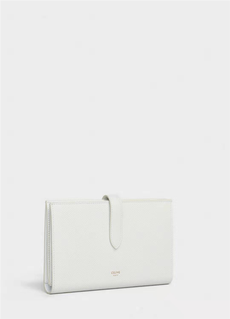 10B633 Celine賽琳 Strap 粒面小牛皮 大號錢夾 Celine錢包 白色