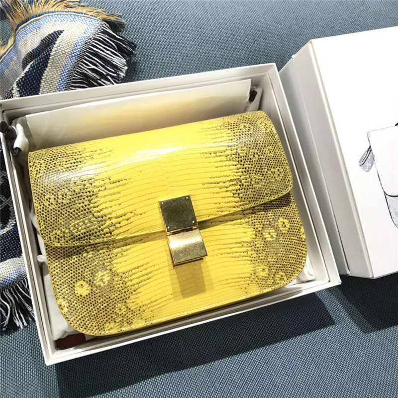 • CELINE 賽琳 17款秋冬 CLASSIC BOX 蜥蜴皮 中號 女士單肩包 亮黃色