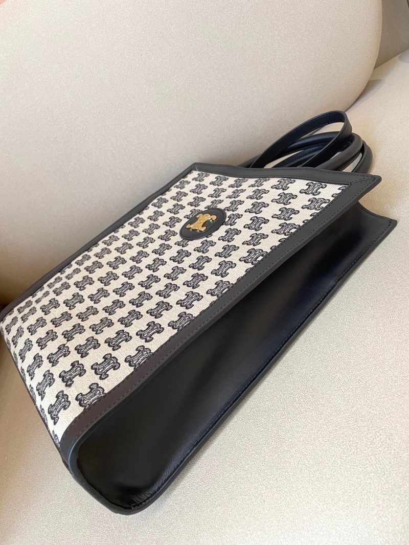 - 194352 Celine賽琳CABAS 小號(hào)TRIOMPHE刺繡織物豎款手袋 celine托特包 黑色