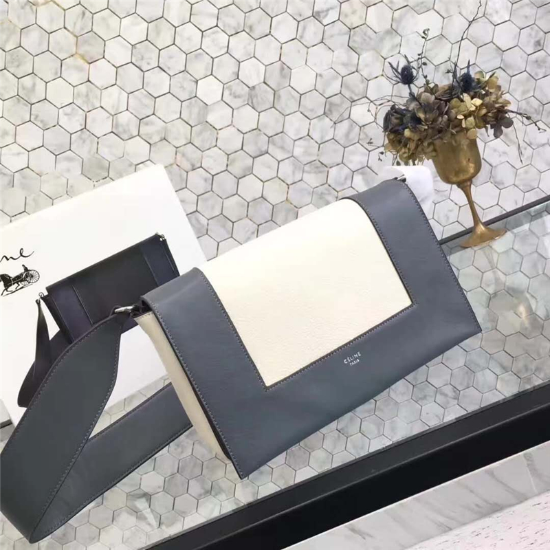 • Celine 賽琳 Frame 新款 亮澤光滑小牛皮 拼色單肩包 灰配白