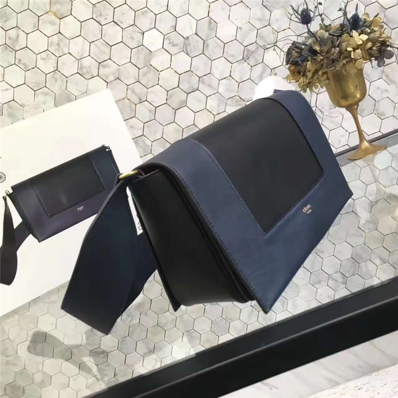 Celine 賽琳 Frame 新款 亮澤光滑小牛皮 拼色單肩包 藏青配黑