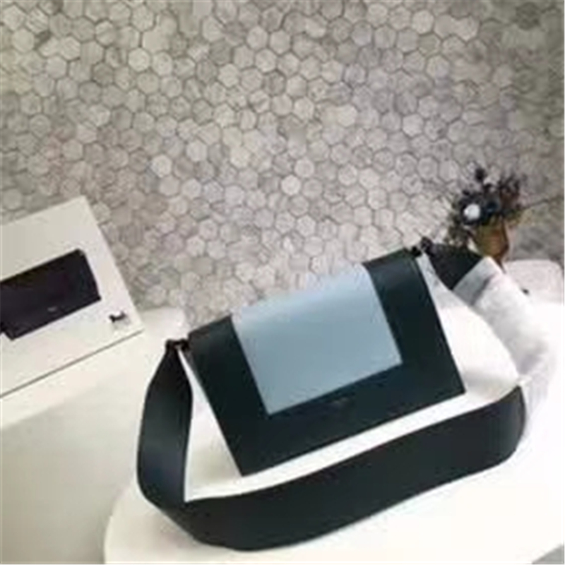 • Celine 賽琳 Frame 新款 亮澤光滑小牛皮 拼色單肩包 墨綠配天藍
