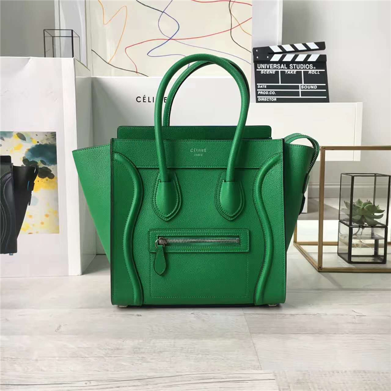 2017賽琳 celine笑臉包 囧臉包真皮女包 頭層牛皮 荔枝紋 翅膀手提包 竹子綠