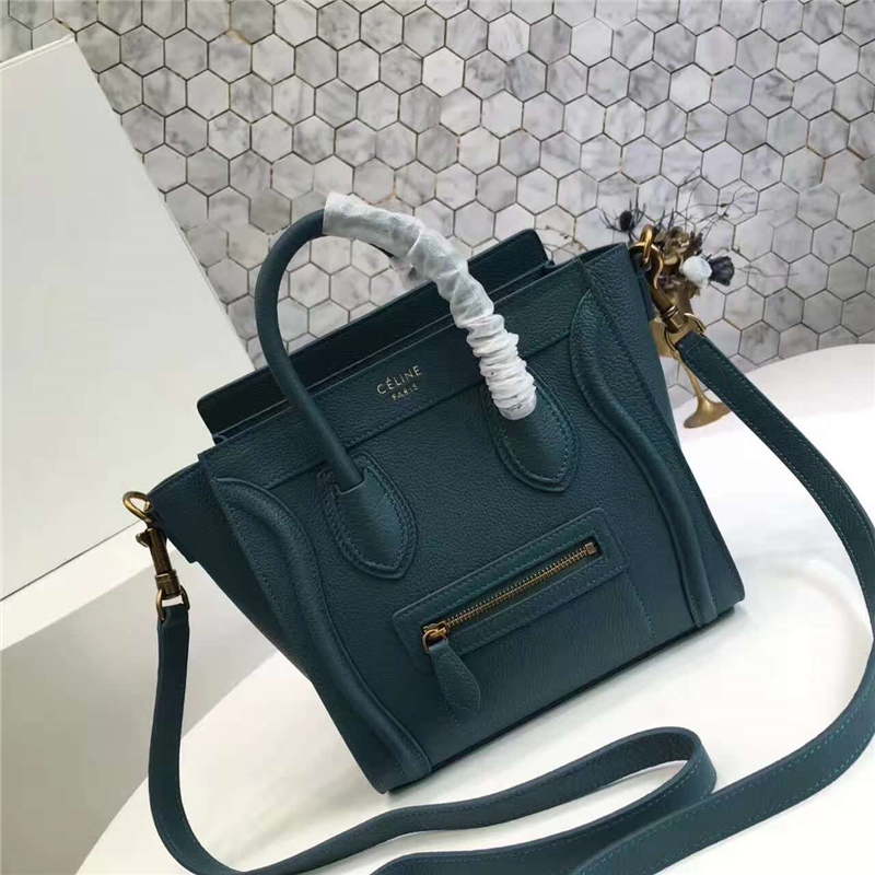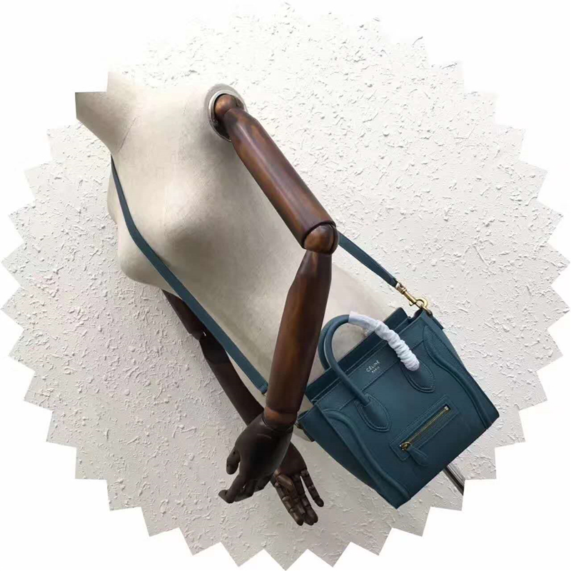 2017賽琳 celine笑臉包 囧臉包真皮 中號 頭層牛皮 翅膀手提包 藍(lán)綠色