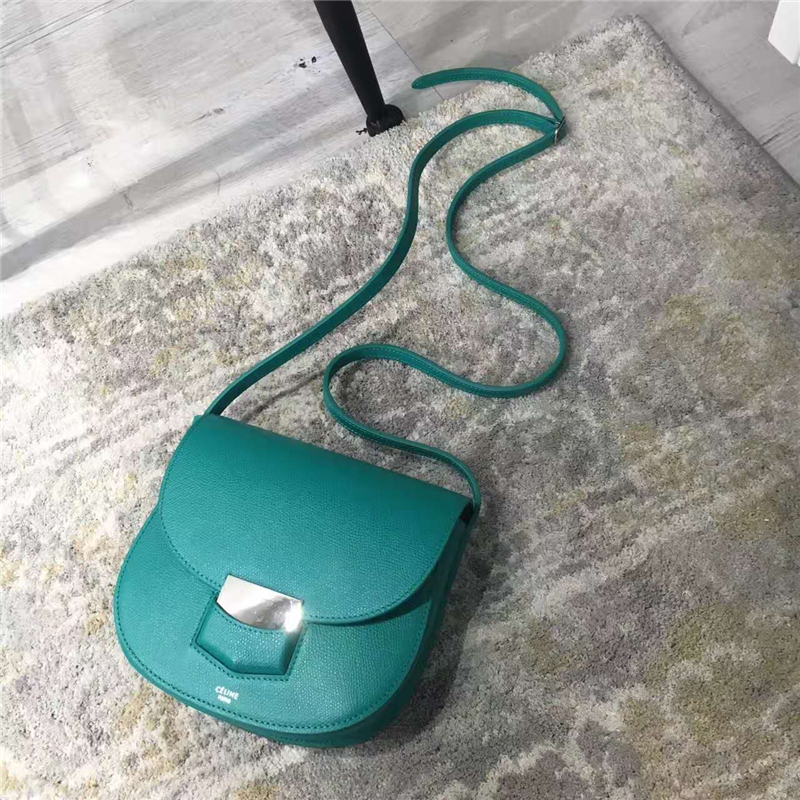 • Celine 賽琳 Trotteur 小號牛皮 銀扣 女士單肩斜挎翻蓋復古包馬鞍包 竹子綠