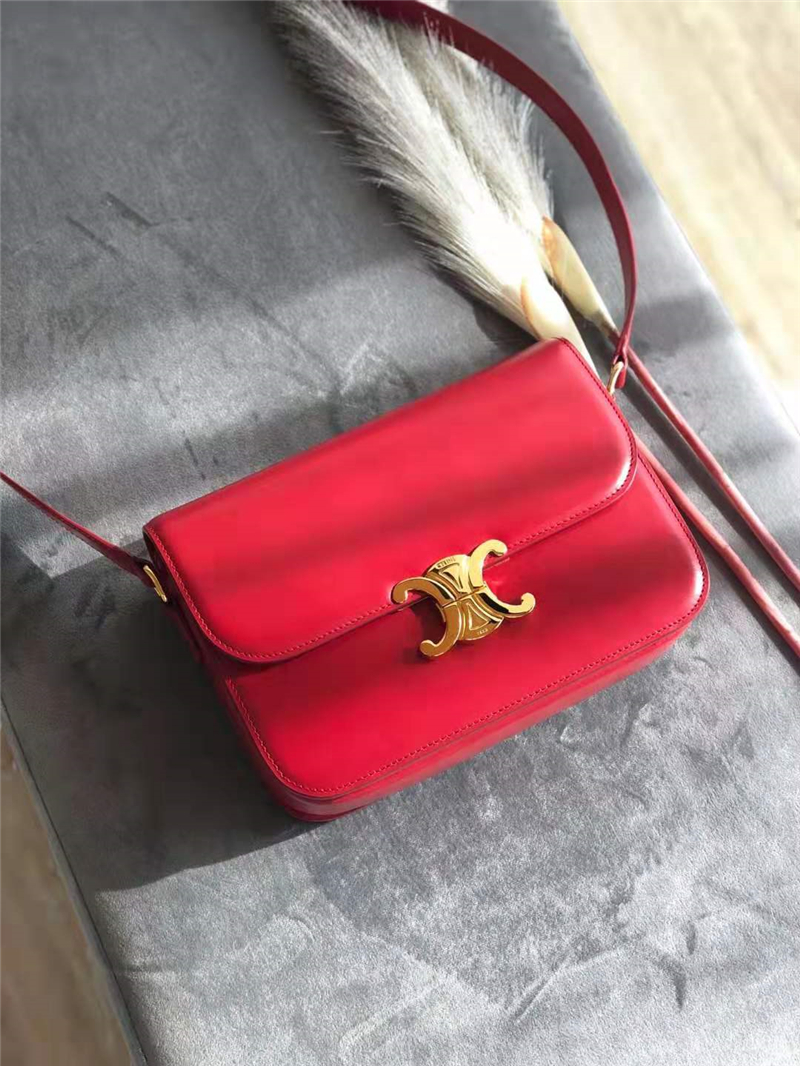 • Celine包包 賽琳女包 Triomphe系列 倒雙C黃銅鎖 中號 紅色