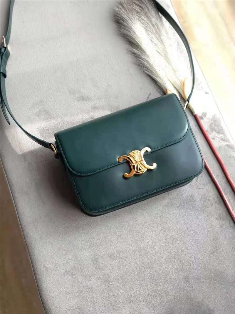 • Celine包包 賽琳女包 Triomphe系列 倒雙C黃銅鎖 中號 綠色