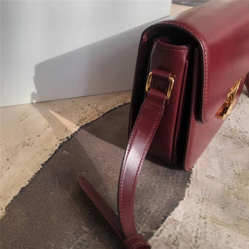 • Celine包包 賽琳女包 Triomphe系列 倒雙C黃銅鎖 中號 酒紅色