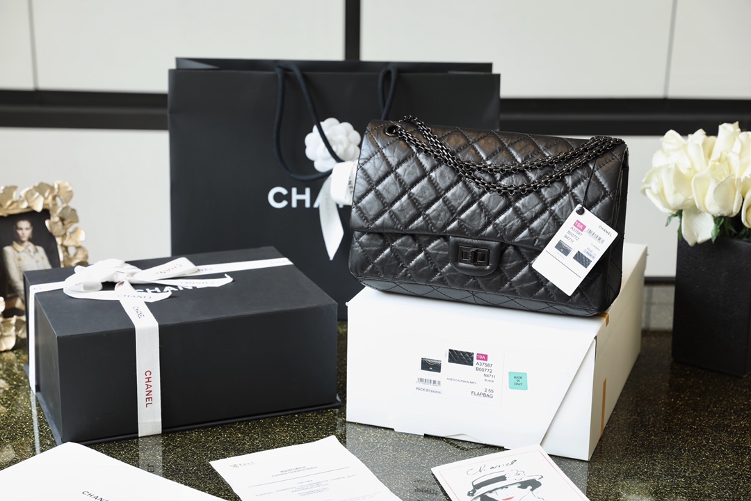 A37587 香奈兒Chanel2.55經典款復古小牛皮與黑色金屬 大號黑色