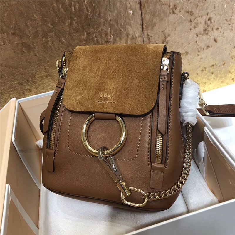 1232 Chloe Faye雙肩包 小牛皮麂皮 珂洛伊背包 Chloe迷你雙肩包 焦糖色