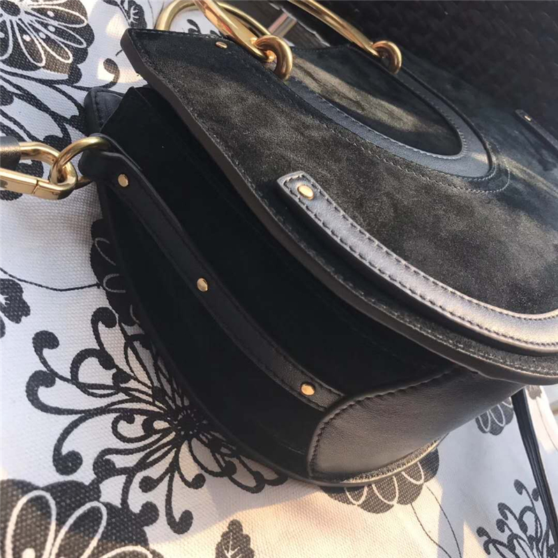 Chloe 蔻依 17新款 Pixie大號女包 牛皮拼磨砂 手提肩包 黑色