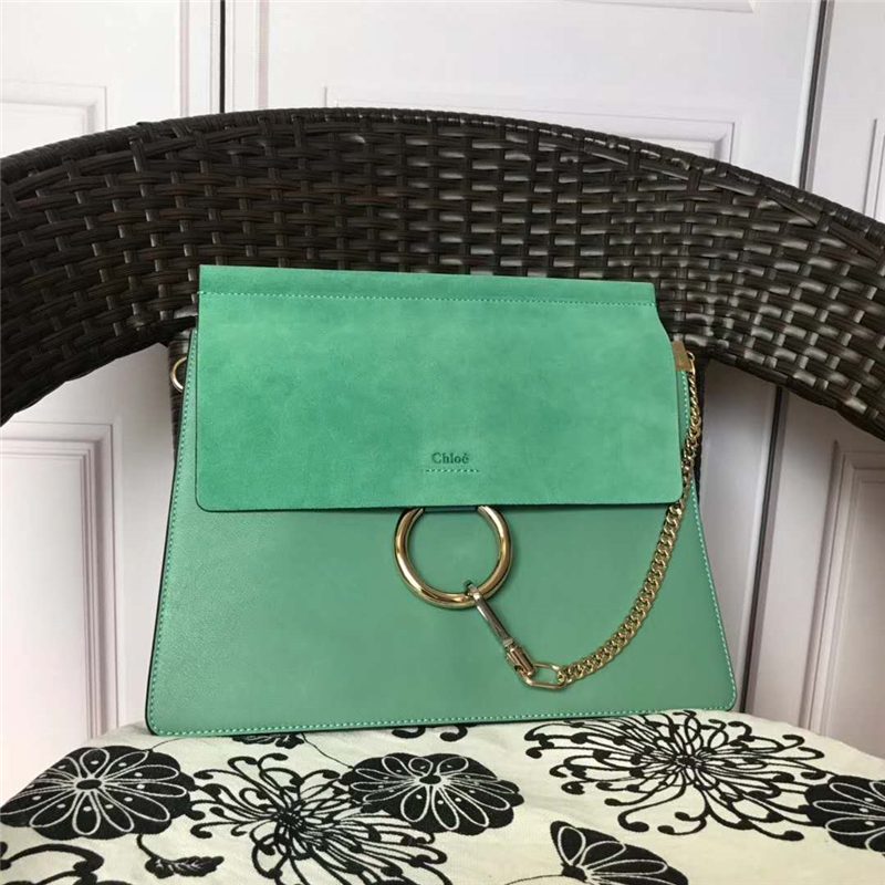 70652 Chloé Faye 珂洛伊 大號 牛皮配磨砂皮 圓環鏈條 單肩斜挎包 蒂芙尼藍