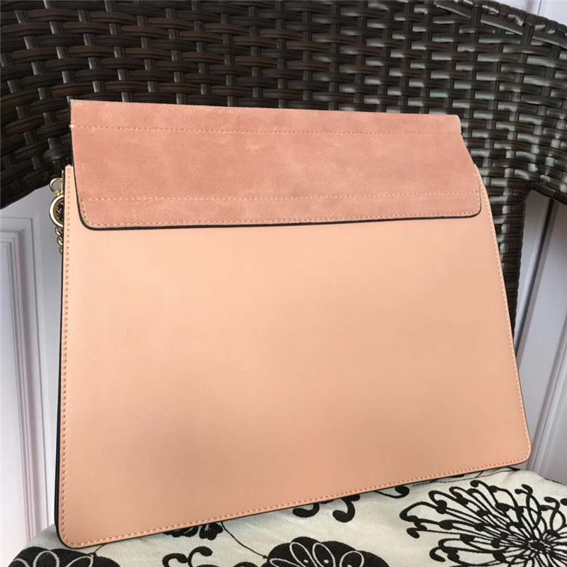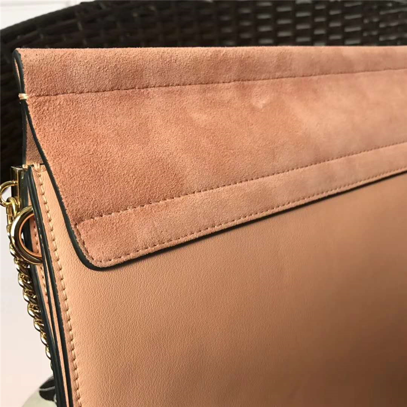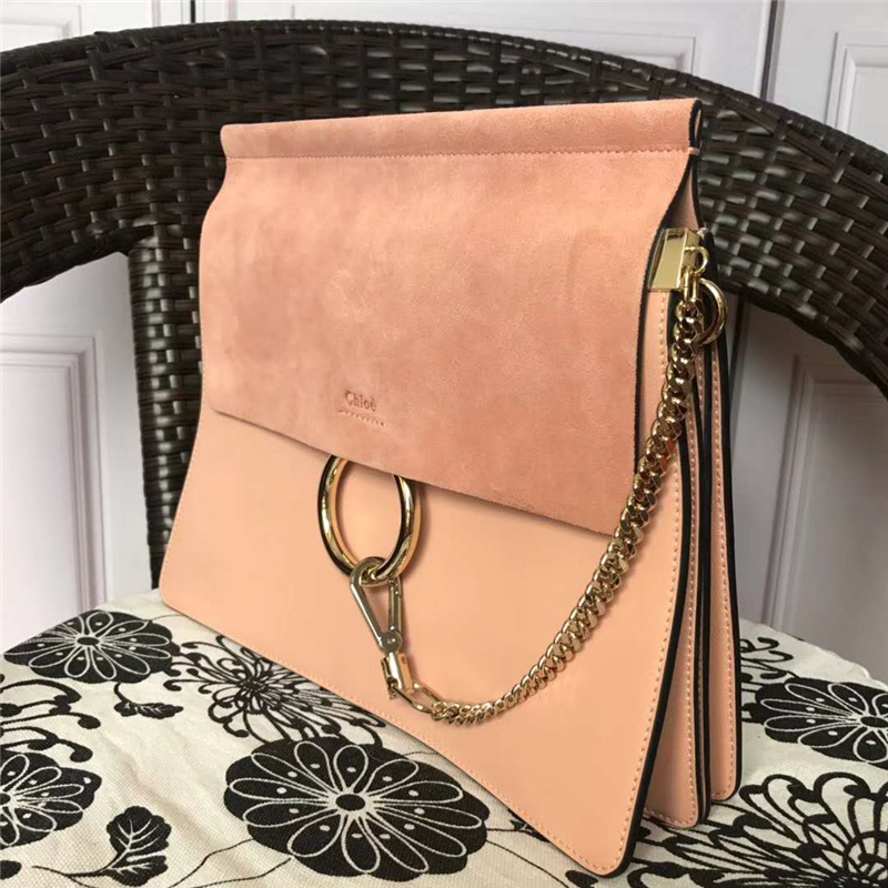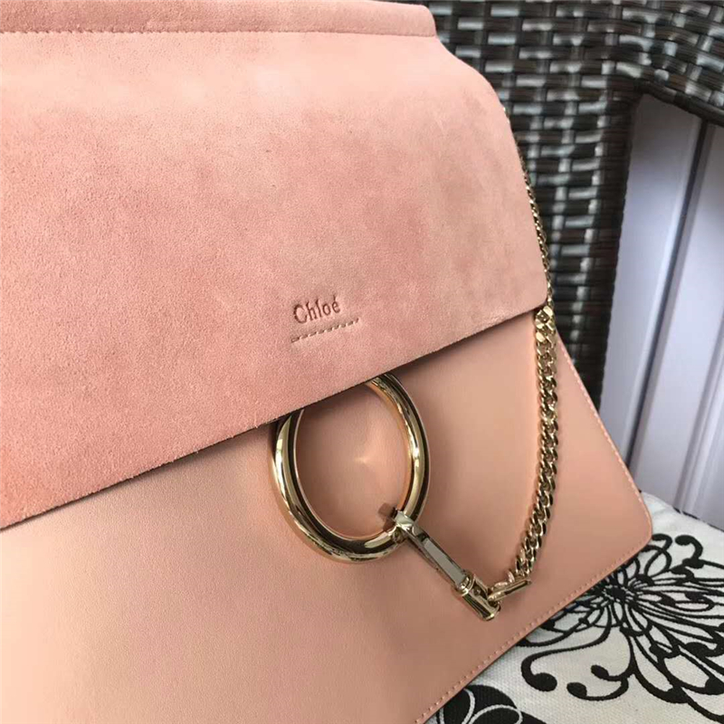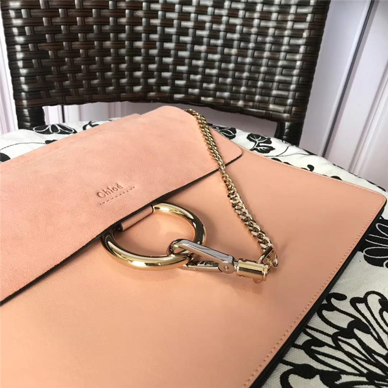 • 70652 Chloé Faye 珂洛伊 大號 牛皮配磨砂皮 圓環鏈條 單肩斜挎包 藕粉色