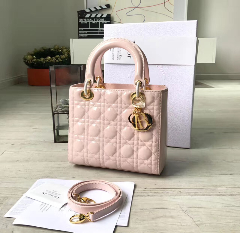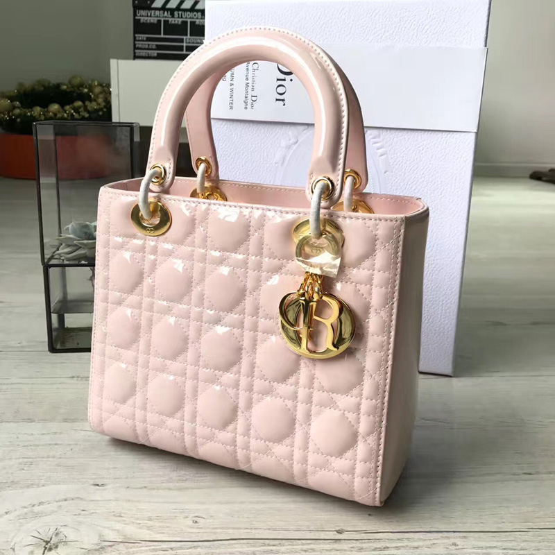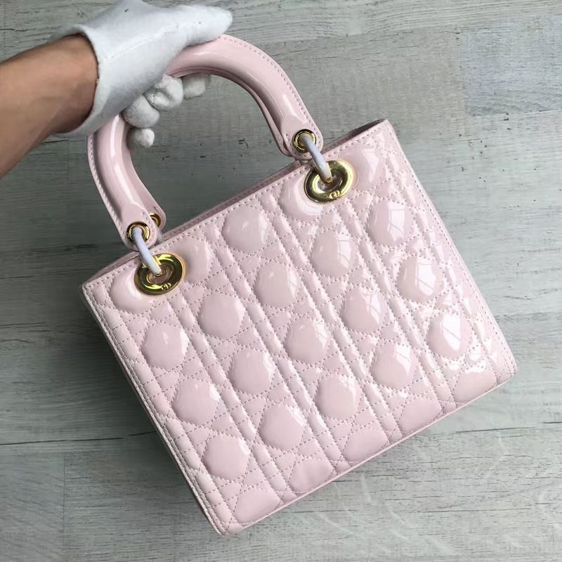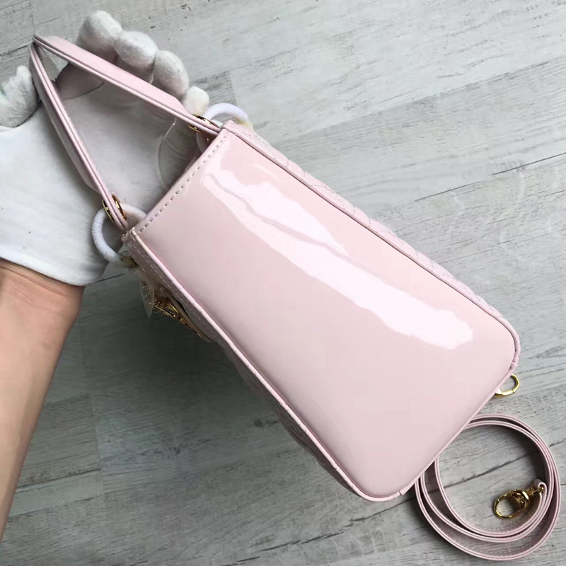 - Dior迪奧 Lady Dior 經(jīng)典戴妃包 五格小號(hào) 粉色漆皮 金色五金