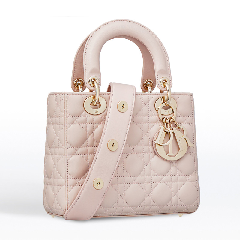 - 結(jié)構(gòu):“Lady Dior”淺粉紅色小羊皮手提包“Cannage”藤格紋縫線裝飾淡金色配飾可調(diào)節(jié)肩背帶,可以Lucky Badges幸運徽章作個性化裝飾可手提亦可肩背或斜挎