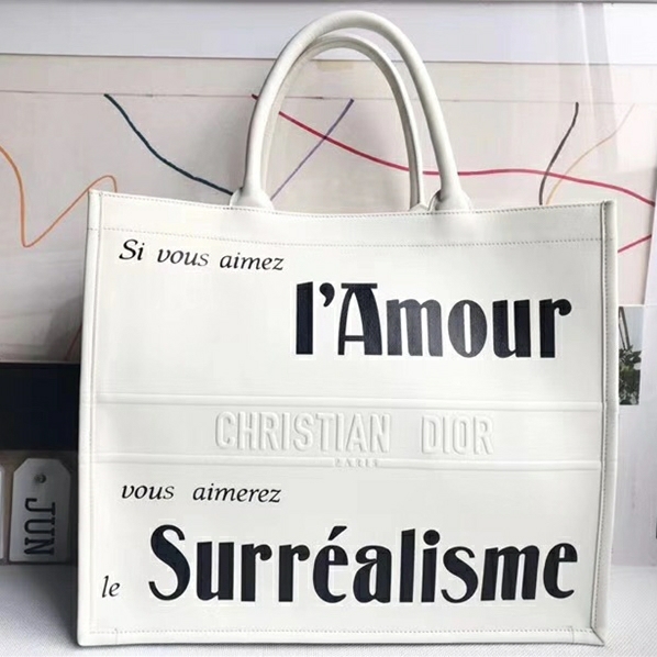 M1286 Dior女包 18新款 秋冬 迪奧托特包 字母印花 雙手柄 手提包 白色
