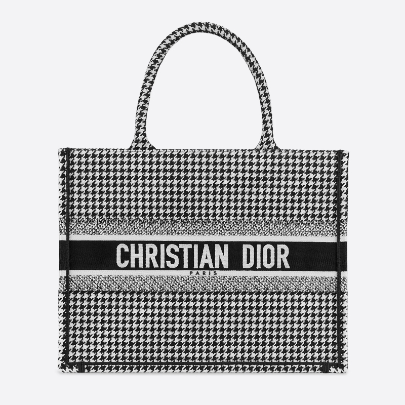 - M1296 Dior Book Tote 小號(hào)手袋 黑白千鳥格刺繡